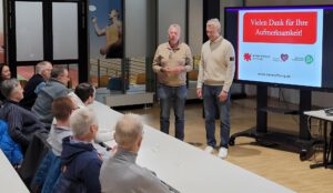 Alle acht Minuten stirbt in Deutschland ein Mensch am plötzlichen Herztod. Im Mittelpunkt stand die Frage, wie Sportler im Notfall schnell und sicher handeln können. „Gerade im Ausdauerbereich kommt es immer wieder zu plötzlichen Herzstillständen und dann zählt jede Sekunde“, erklärte Göbel zu Beginn. Mit seiner praxisnahen Art führte er die Teilnehmenden durch die wichtigsten Schritte der Wiederbelebung: Erkennen eines Herzstillstands, Notruf, Herzdruckmassage und der Einsatz eines automatisierten externen Defibrillators (AED).