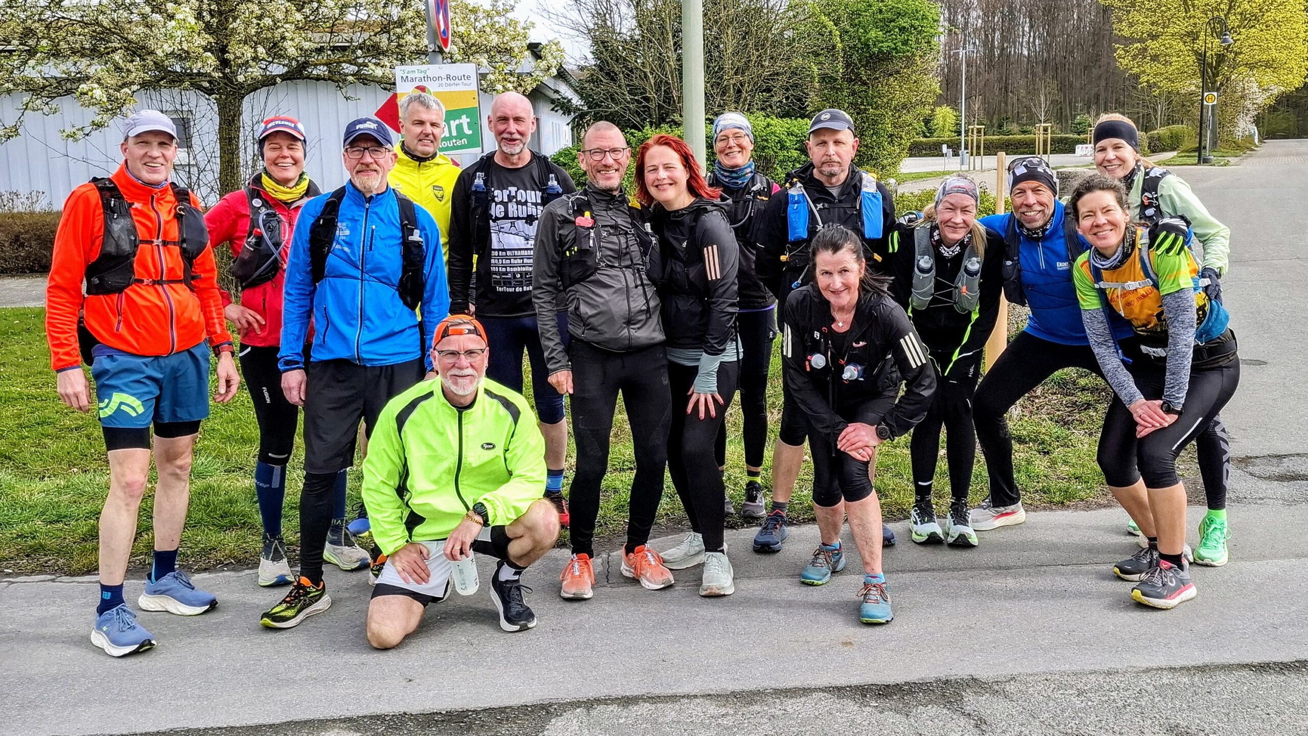 Am Osterwochenende wollten wir noch einmal ruWeln. Daher nutzten wir den 3. April 2026, Karfreitag, für den ruWel 27. Insgesamt 22 Mitläufer sind nach Welver gekommen, um mit uns zu laufen. Darüber haben wir uns sehr gefreut. In einer „großen“ Gruppe sind wir zuerst die knapp 22 km lange Ballonathonrunde gelaufen. Sie entstand in der Coronazeit in der ersten Welle im Jahr 2020. Einige unserer heutigen Mitläufer waren damals auch schon auf dieser Runde unterwegs und es waren immer wieder Kommentare zu hören wie zum Beispiel „An diese Stelle kann ich mich noch erinnern“ oder „Hier haben wir doch damals den soundso getroffen“.