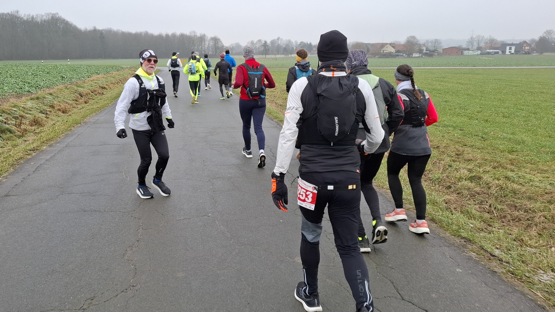 14 Marathonis haben sich von der Kälte nicht aufhalten lassen und sind den Silvesterlauf-Marathon mitgelaufen. Einer (Frank) ist den Prolog mit dem Rad gefahren, weil er nicht fit genug für einen Marathon war. Leider war es im Ziel in Soest so kalt, dass wir in den durchgeschwitzten Klamotten nicht auf einander warten konnten. Und die Verpflegung im Ziel (und auf der Strecke) war ja auch eher mager. Damit konnte man sich auch nicht länger aufhalten und wärmen.