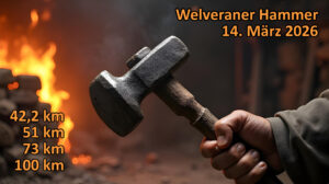 Die nächste Ausgabe des Welveraner Hammer 100 startet irgendwann demnächst. Dann geht es um 6:00 Uhr an der Bördehalle in Welver los (Adresse: Am Sportplatz 7, 59514 Welver). Parkplätze sind dort ausreichend vorhanden.